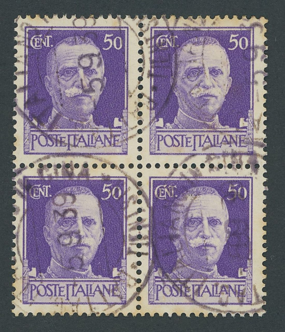 1939 (5 Sept.) Imperial series 50c. bright violet in a block of four cancelled by the double-circle "