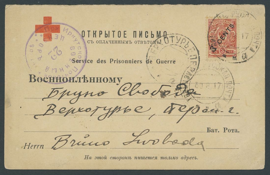 1917 (30 Aug.) Red Cross Prisoner of War postcard bearing "