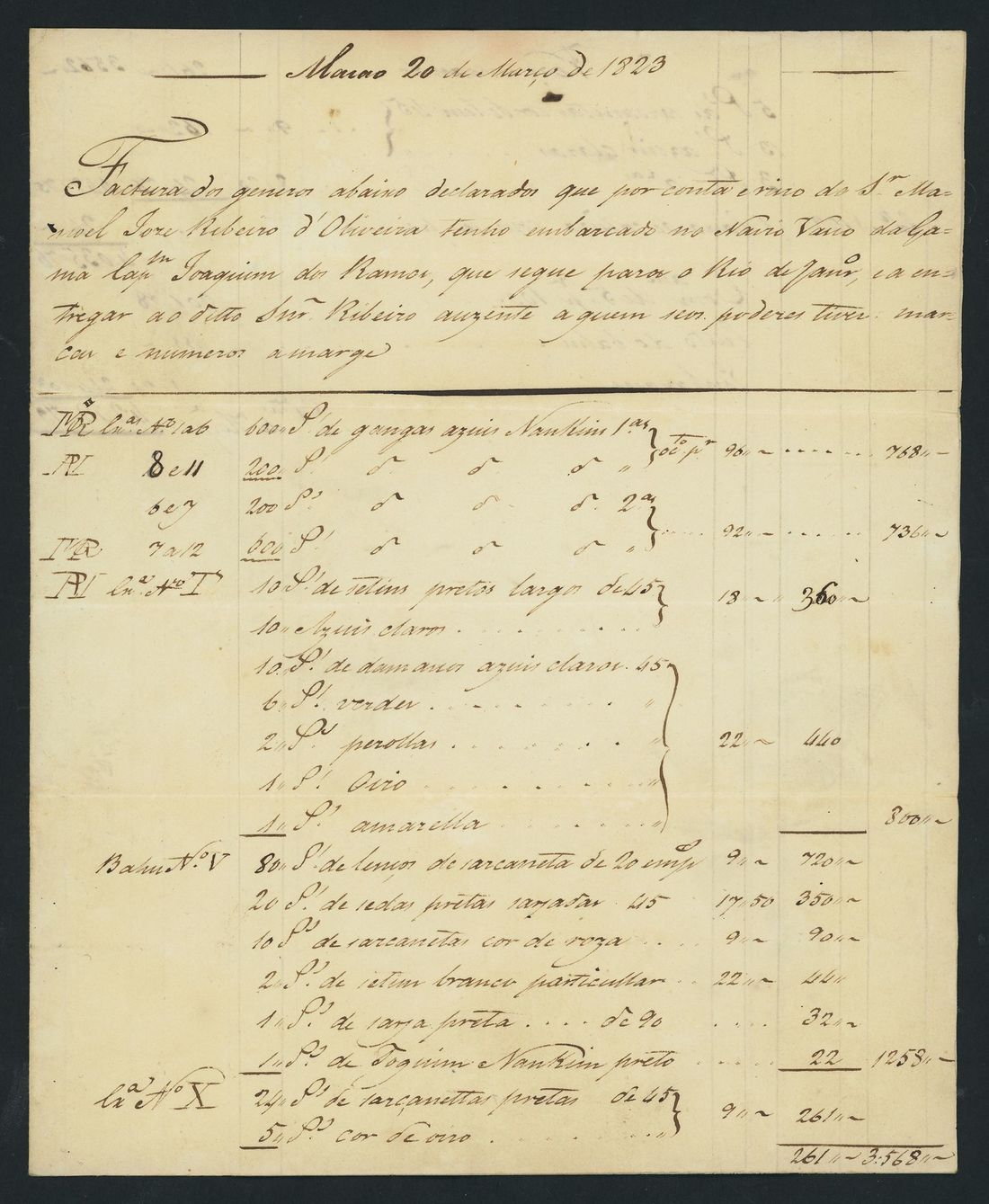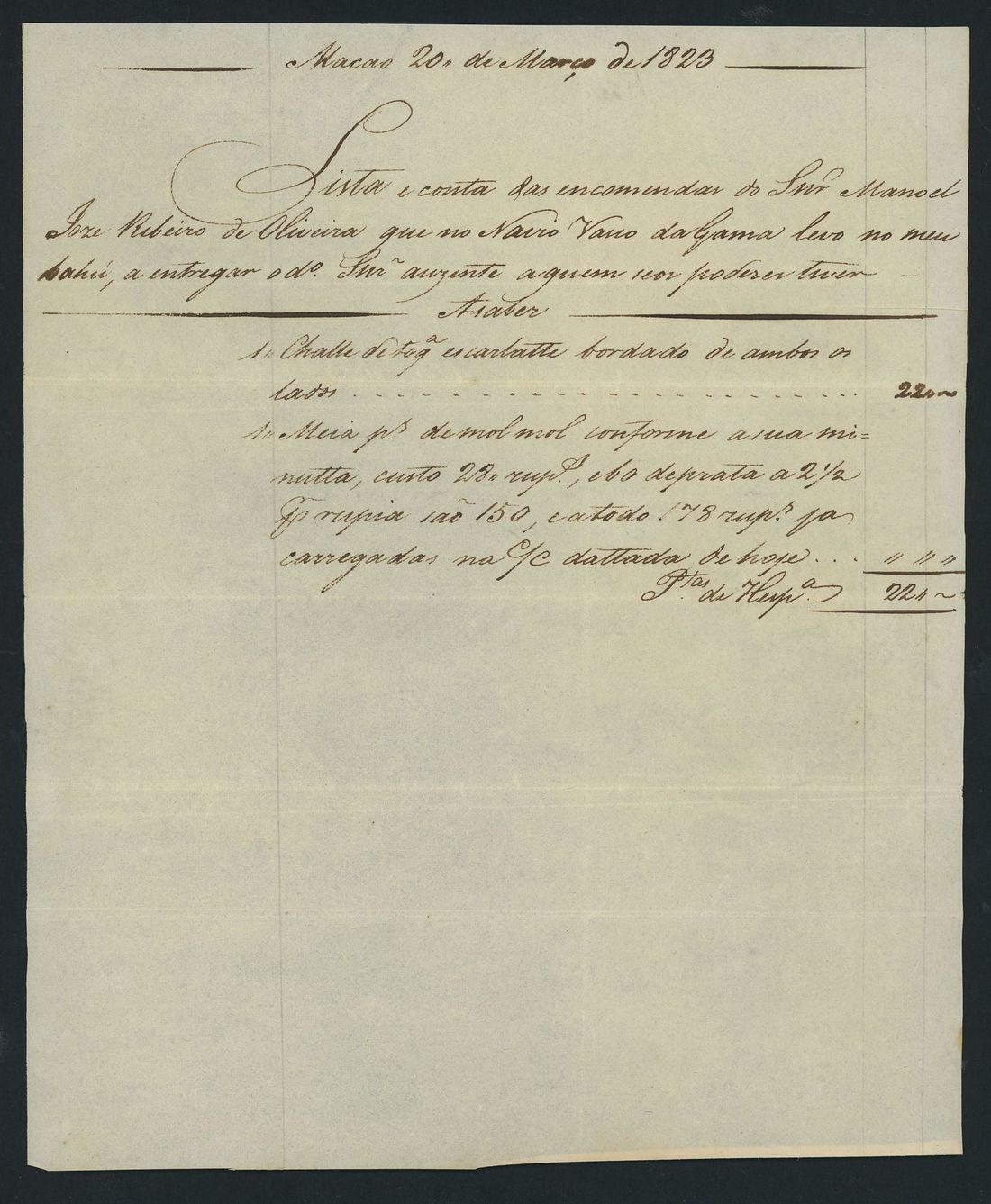 1822-24 a group of maritime receipts and commercial invoices from Macao, several relating to the carriage of goods on the ship 'Vasco de Gama'; in good condition. With a detailed list. (7 documents)