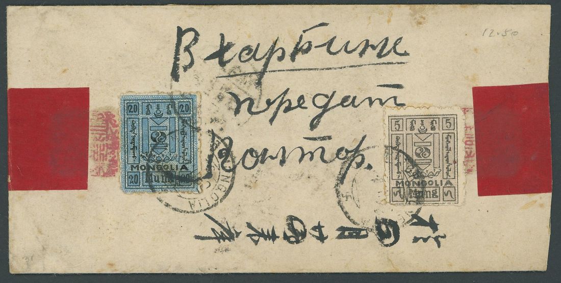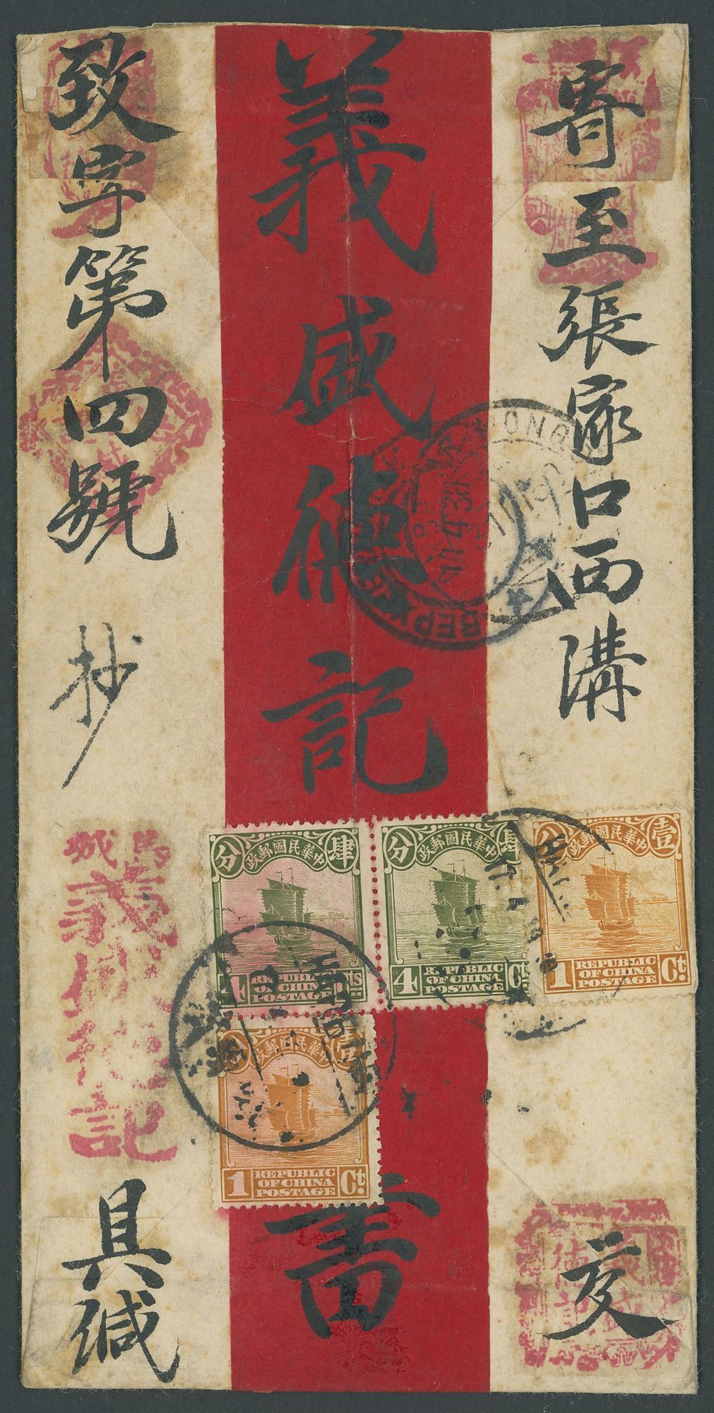 1939 (31 Mar.) red band envelope to Kalgan bearing, on the reverse, 1924 5c. and 20c. tied by "