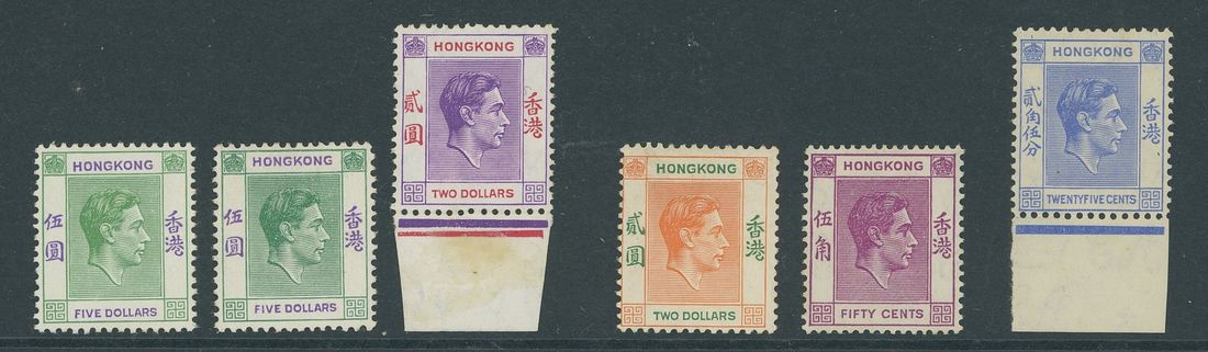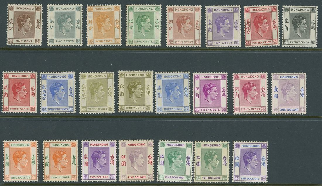 1938-52 1c. to both $10, large part original gum; with some additional shades including $2 (2) and $5 plus $5 yellowish green and violet; $10 green and violet with typical gum toning. (29). Photo