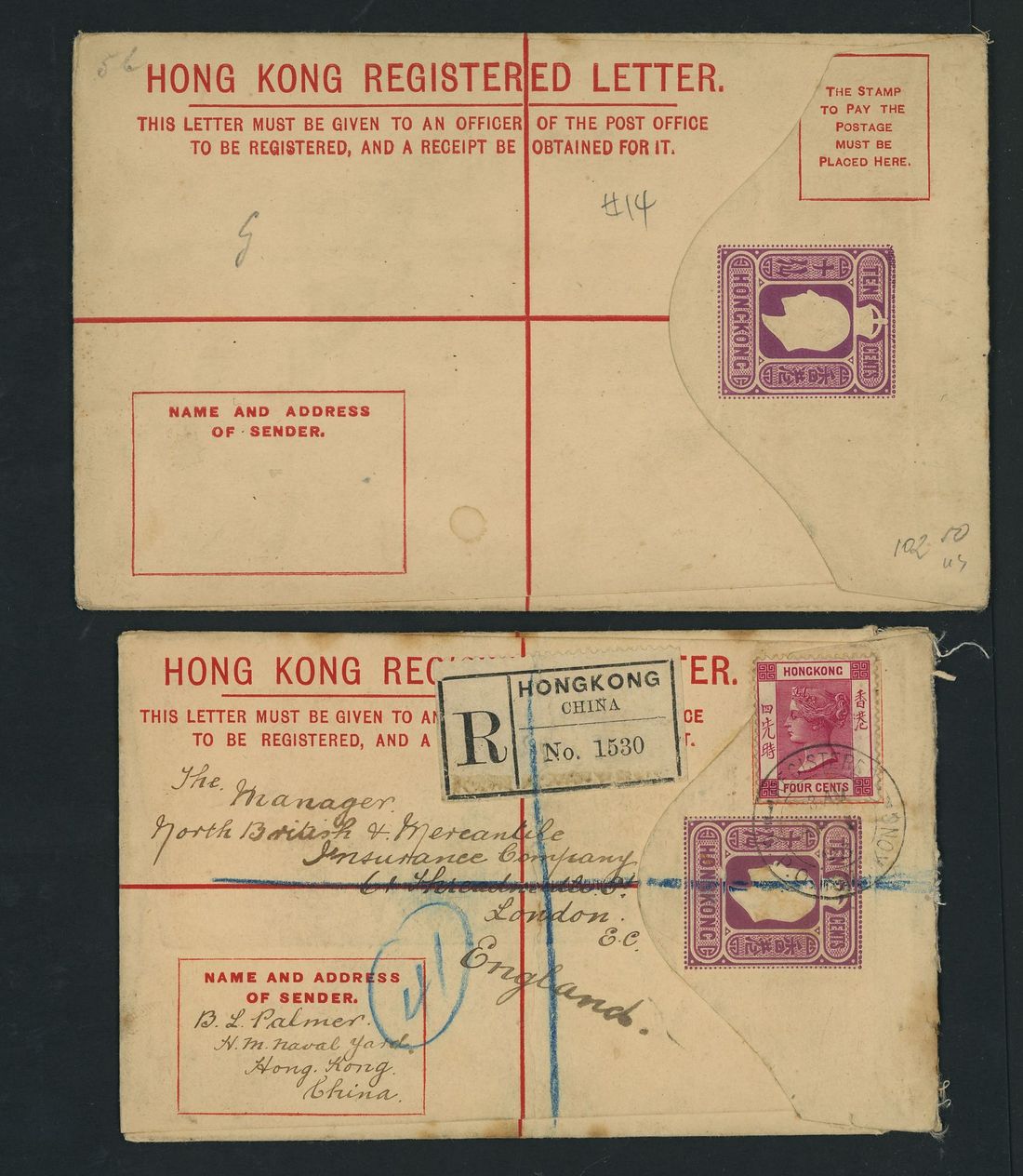 1903-07 a selection of 10c. envelopes with 1903 Size F used to London and uprated Q.V. 4c., unused size G; 1907 unused with sizes G, H, H2 and K; good to fine. (6 covers)