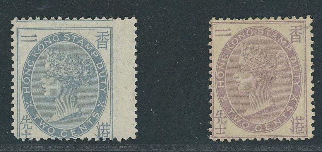 1873 2c. slate-blue, watermark Crown CC, part original gum, with right wing margin; centered low and blunt corner perf. Also 1890 2c. dull purple, unused. Photo