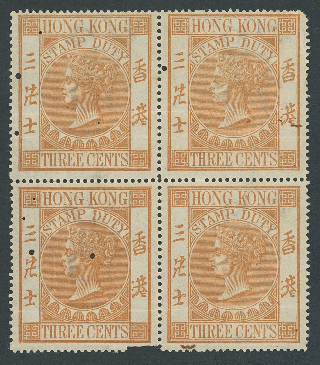 A group of unused Q.V. values with 1867 3c. orange block of four (some faults), 30c. brown and $1 pale blue; also 1885 3c., 5c. and 10c. lilac; unused or part original gum. (9)