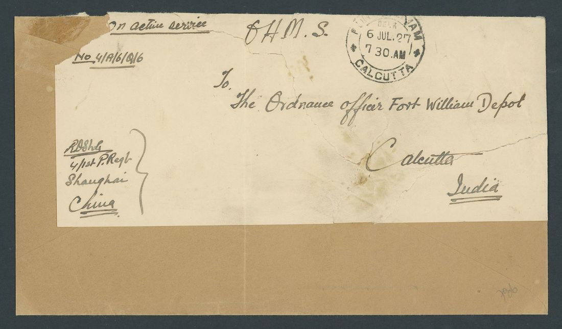 1927 (9 June) "OHMS" envelope forwarded locally by the Despatch Rider Letter Service, then reused and sent to India; the reverse bearing a fine strike of the large "