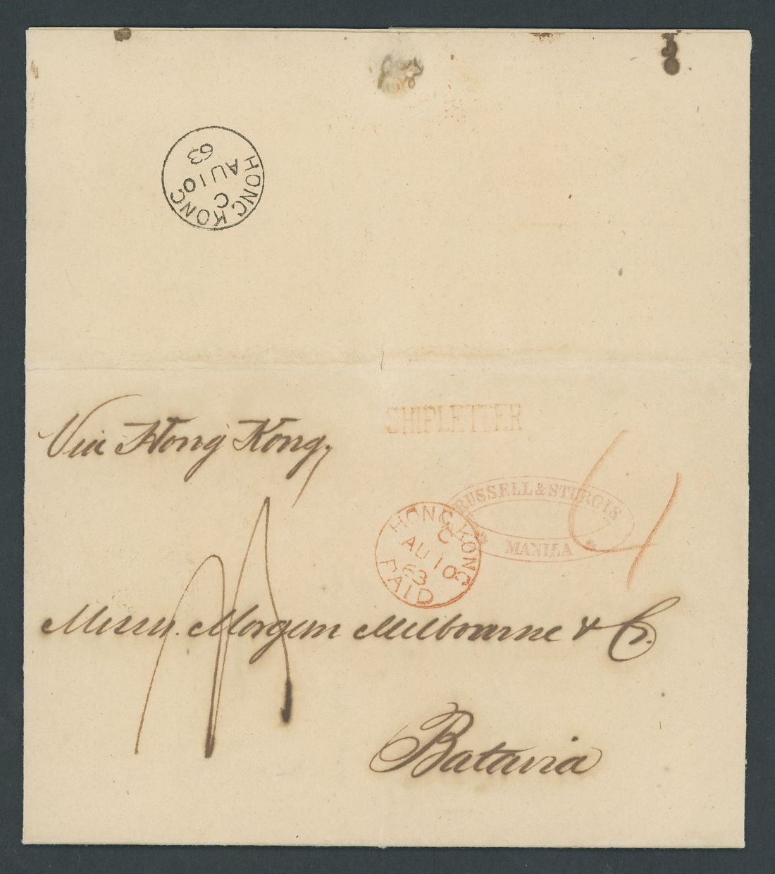 1863 (4 Aug.) entire letter to Batavia "Via Hong Kong" bearing "