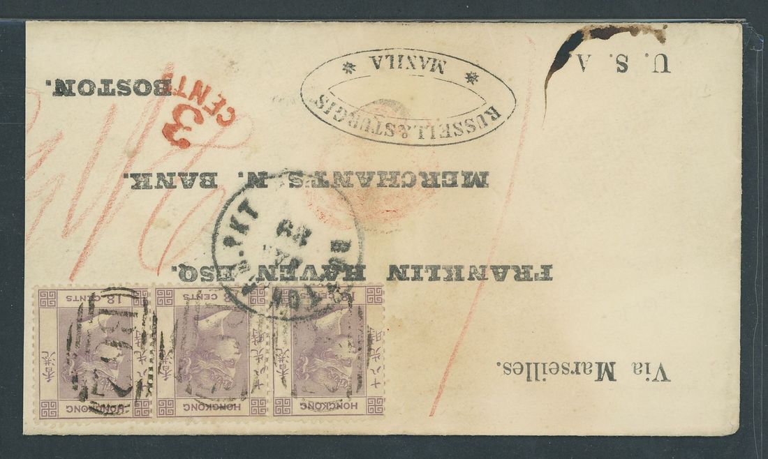 1867 (Nov.) printed envelope to Boston "Via Marseilles" with "