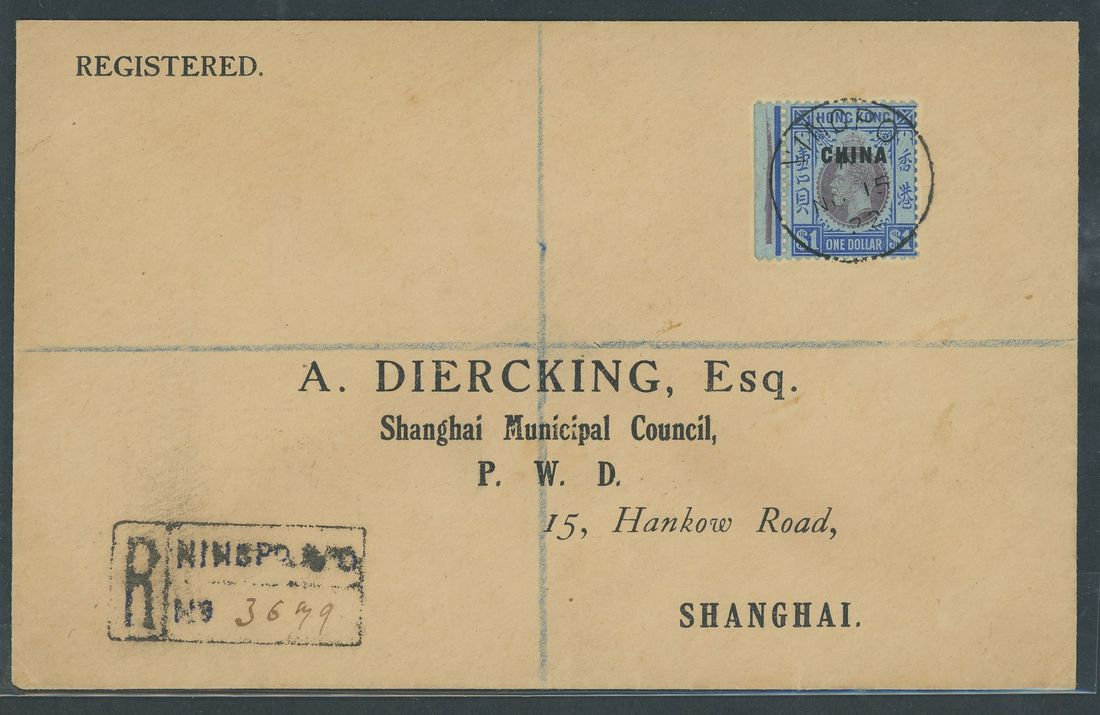 1922 (15 Nov.) Diercking envelope registered to Shanghai bearing "