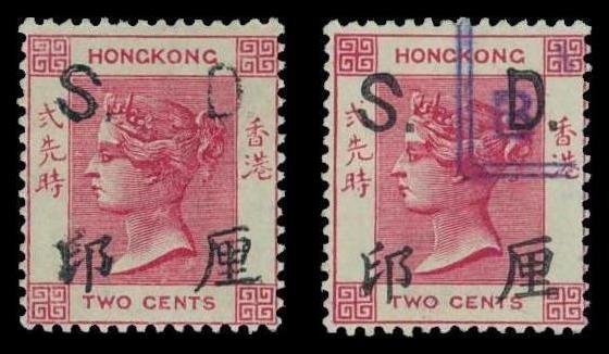1891 "S. D." overprint on 2c., weak overprint with dot after "D" virtually omitted, large part original gum. Also a normal with fiscal boxed cancellation. S.G. S2. Photo