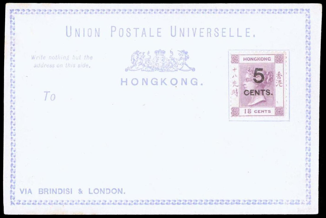 1879 (1 Apr.) 5c. on 18c. formular card, blue printing on white card, very fine unused. Yang P2b. Photo