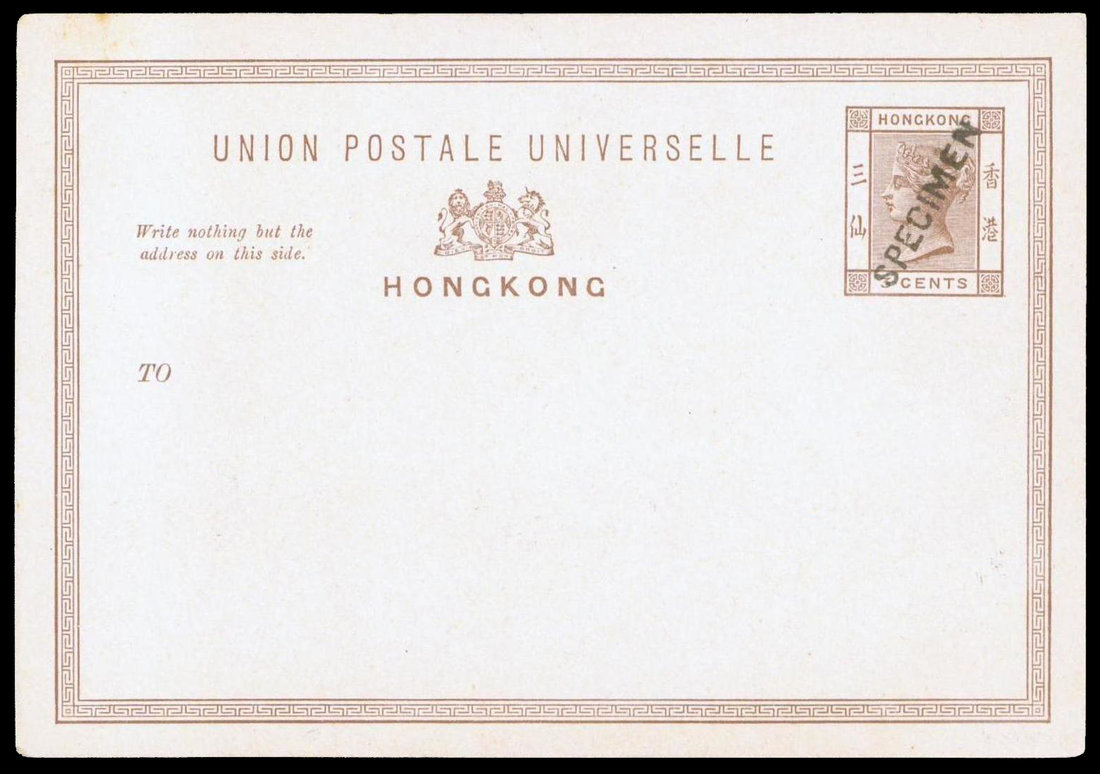 1892 Q.V. 3c. stationery card with indicia overprinted "Specimen" diagonally, fine to very fine and fresh. Yang P9S. Photo