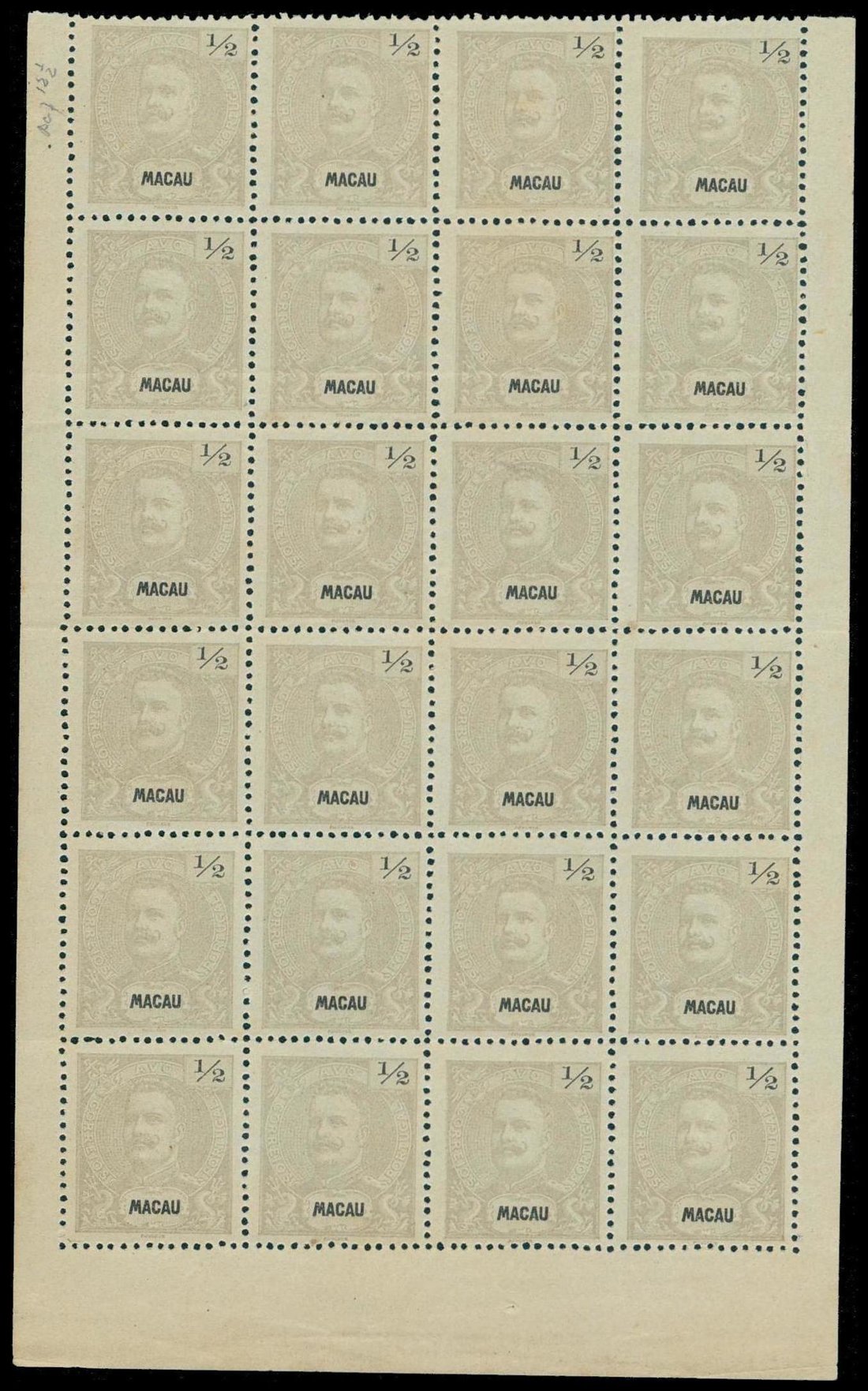 1898-1900 Perf.12½ ½a. grey in a part sheet of twenty four, unused without gum as issued; a couple of perf. tones and two horizontal bends. S.G. 130, £600. Photo