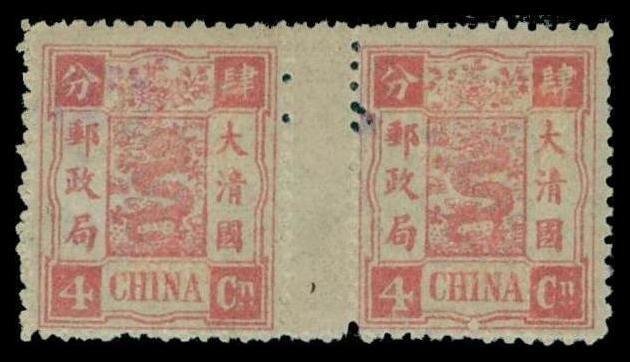 4ca. rose-pink horizontal with interpane margin in between, unused with much original gum, Chan 25. Photo