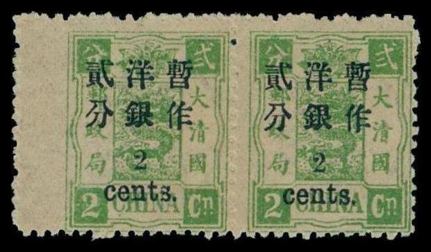 2c. on 2ca. horizontal pair, left stamp with imperforate gutter margin at left, fine and fresh unused with much original gum. Chan 39var. Photo