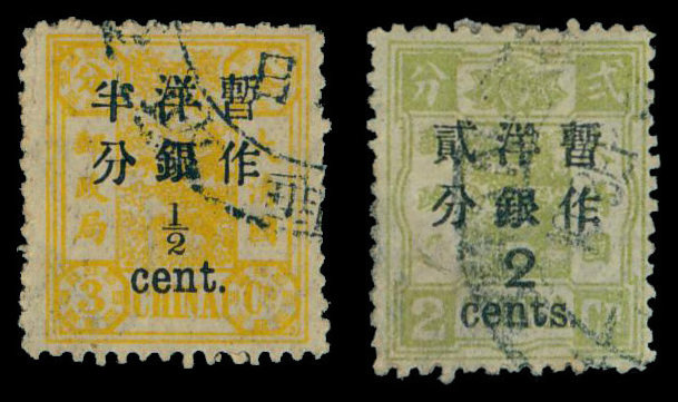 ½c. on 3ca. and 2c. on 2ca.set of two, fine cancelled by dollar chop. Chan 82-83. Photo