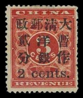 2c. on 3c. red, position 15, variety inverted "s" in "Cents", deep bright colour, fine and fresh unused with large part to much original gum, hinge remainder. Chan 84g. Photo