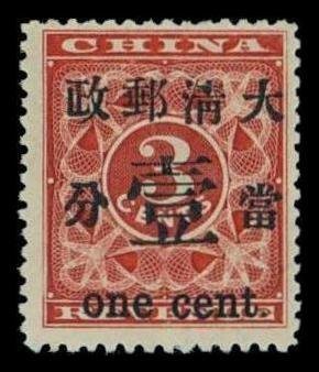 1c. on 3c. red, bright colour, choice centring, very fine and fresh unused with much original gum. Chan 87. Photo