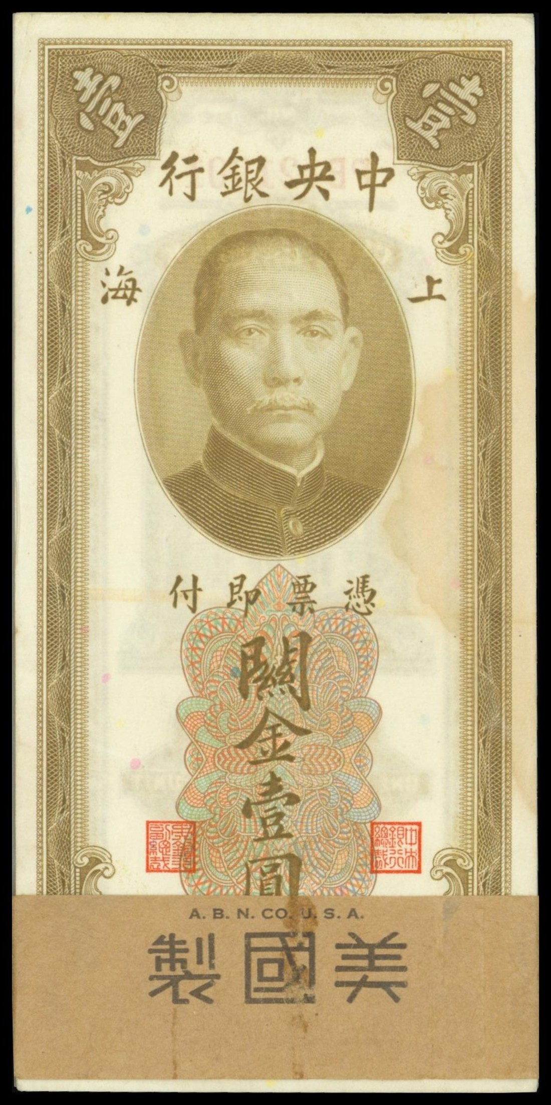 Central Bank of China, consecutive run of 100 x 1 CGU, 1930, vertical format, brown and multicolour guilloche, Sun Yat Sen at top centre, reverse brown, bank building at top centre