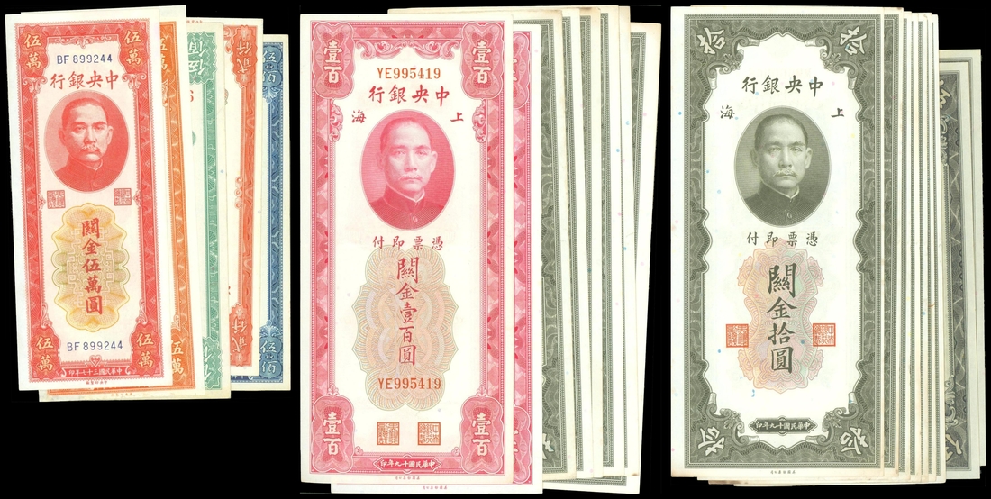 Central Bank of China, lot of 27 Customs Gold Units, 1930's to 1940's, from 5yuan to 50,000yuan, mainly extremely fine (27).