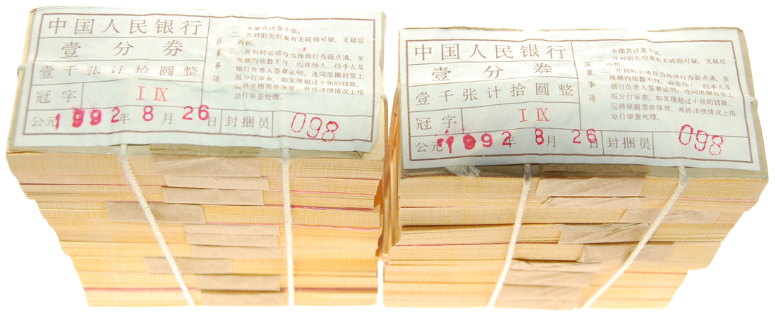 People's Bank of China, 2nd series renminbi, 1fen, 1953, Roman prefix number I IX, 2000pieces in 2x blocks of 1000, each block with original inspection certificate and string,
