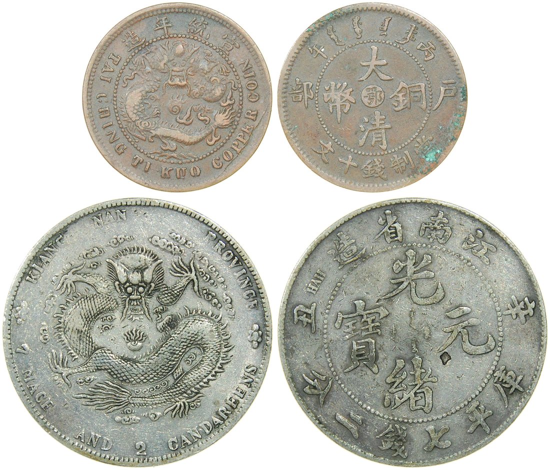 China, lot of 2 coins, Kiangnan Silver Dollar and 10 cash, Hubei Provincem very fine (2)