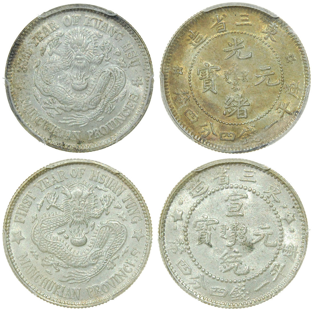 China, Manchurian Province,a pair of Silver 20 cents, Guangxu and Xuantong era,dragon on obverse, Manchurian characters at centre on reverse,