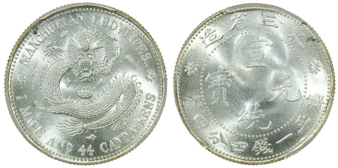 China, Manchurian Province,Silver 20 cents, Xuantong era(1913),dragon on obverse,