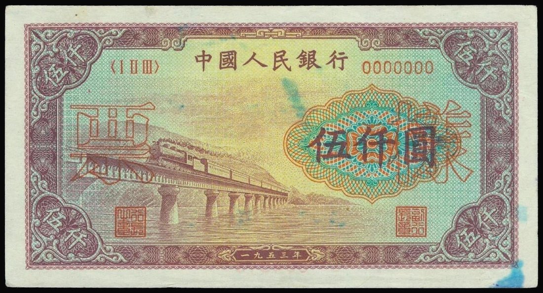People's Bank of China, 1st series renminbi, 5000yuan, specimen, 'Wei He Bridge', printed on both sides,