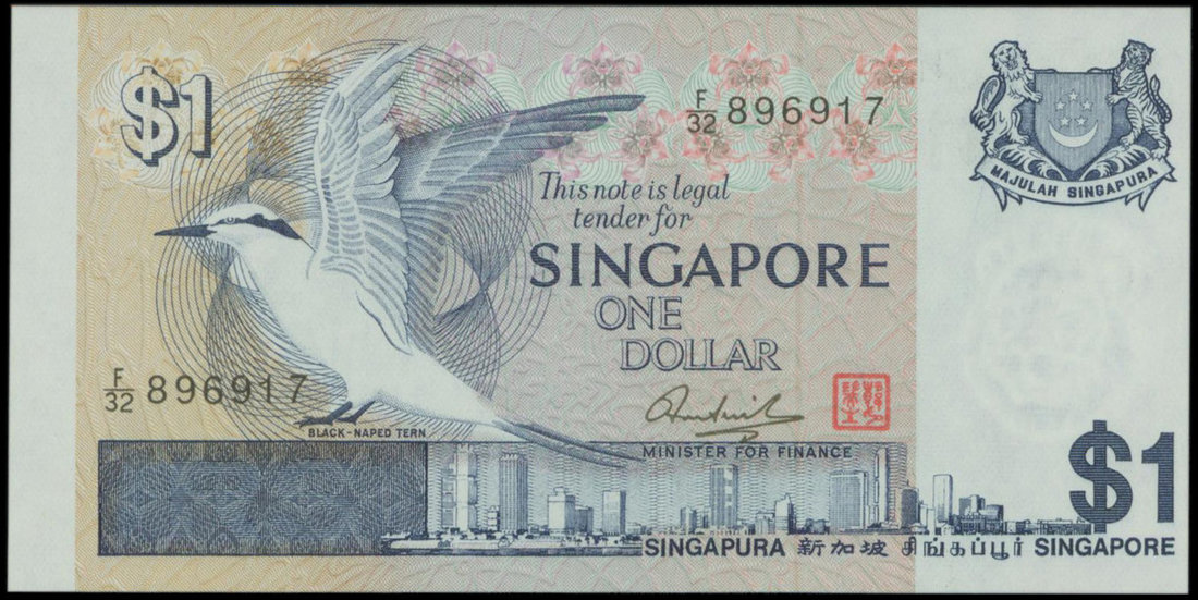 Singapore,$1, ND(1976), the ‘Bird’ series, serial number D64 306146,errors, printing shifted to the left,