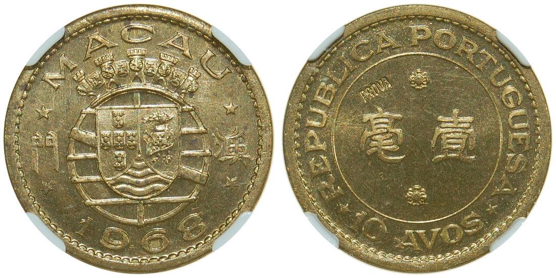 Macau,copper nickel 10 Avos, Prova( specimen), 1968,