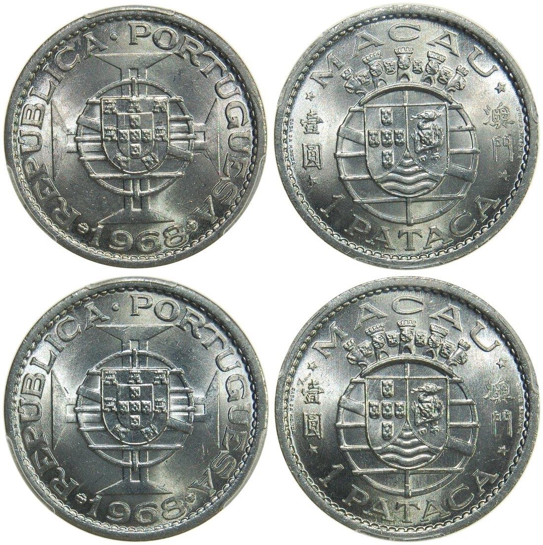 Macau, lot of 2x 1 pataca, 1968, both graded PCGS MS64 (2)