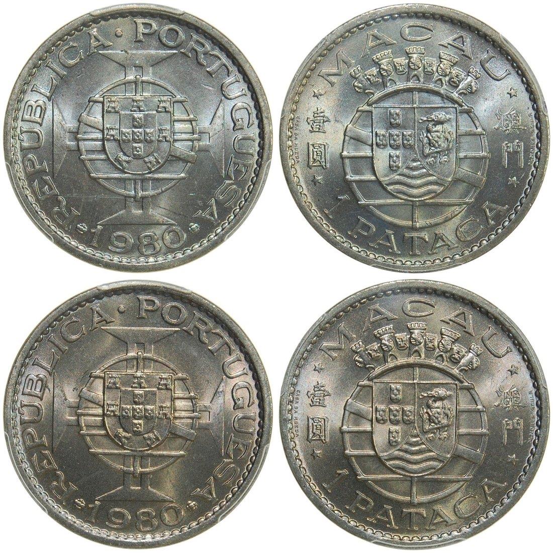 Macau, lot of 2x 1 pataca, 1980, PCGS MS65 and MS66 (2)