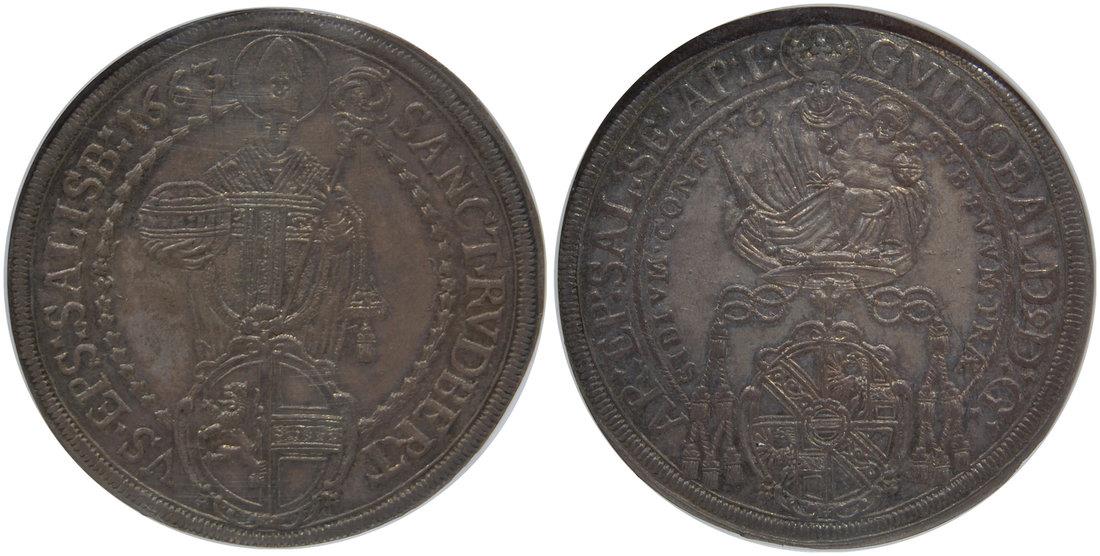 Austria,silver 1 taler, 1663,even toning, well reserved,