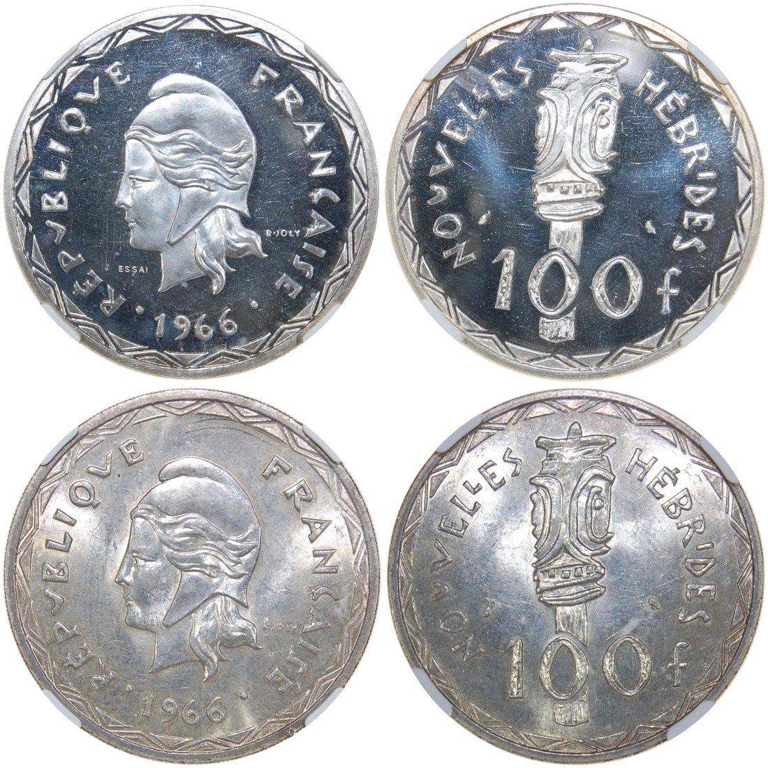 New Hebrides,a lot of two silver 100 francs, 1966,