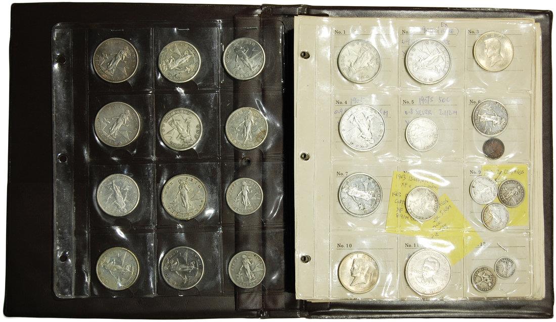 An album of world coins, an old collection with the value lying mainly in the silver Phillippino silver pesos issued in the early 1900's, also silver coins from South Africa, a high grade set of Hong Kong cupor nickel dollars from 1960 - 1975, uncirculated brass 5 and 10 cents 1960's and 1970's,