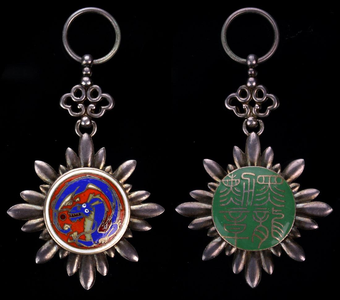 A Very Rare Order of Black Dragon, Eighth Class,silver and enamel breast badge, dragon on obverse, Chinese calligraphy characters on reverse, circulated in late Qing Dynasty,