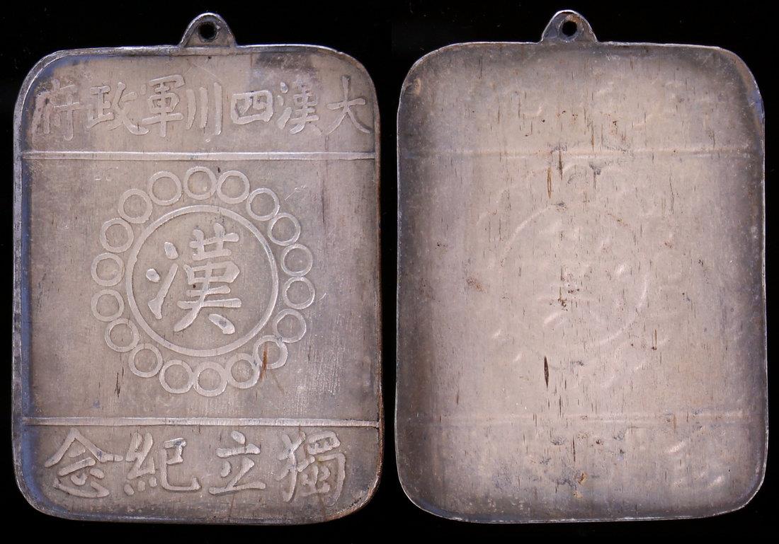 Szechuan Military Government,rectangle shaped silver medal for the Commemorative of Indepandent, Chinese character ‘Han’ surrounded with circles at centre,