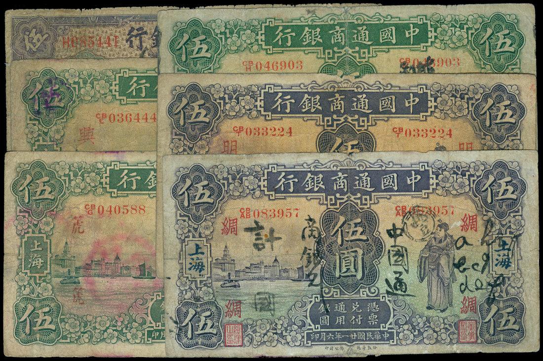 The Commercial Bank of China,lot of 6 x $5, 1920(1), 1926(3), 1932(2),purple, green, purple on multicolour underprint respectively,