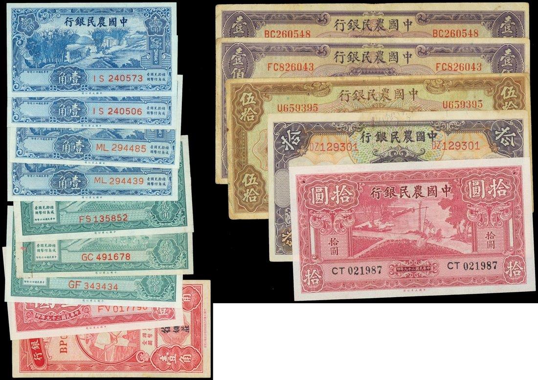 Farmers Bank of China, lot of 14 notes from the 1930's to 1940's, including the 10 yuan 1940,