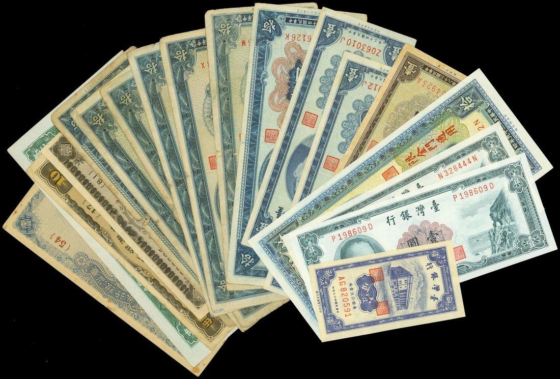 Bank of Taiwan, lot of 19 notes from 1930's to 1940's, different types and denominations,