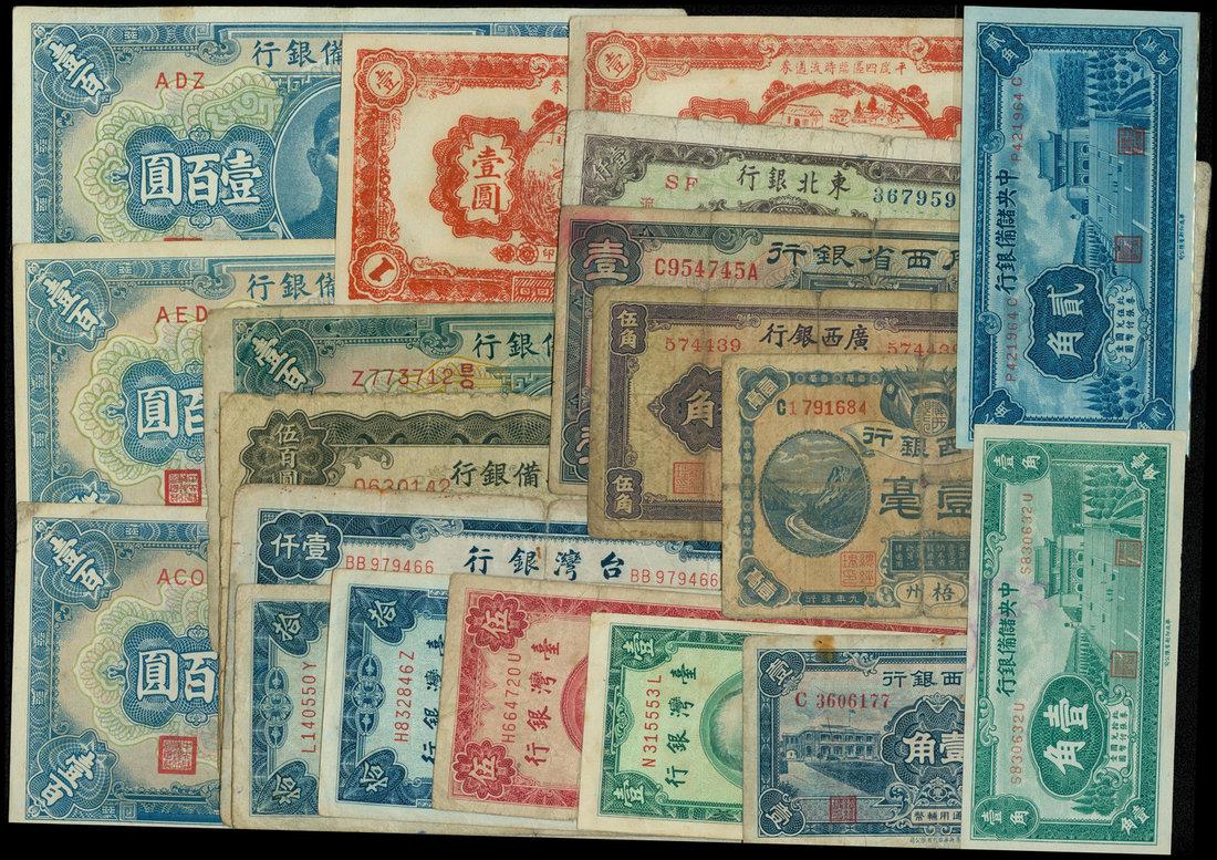Republican era, lot of 20 notes, different provincial and Japanese puppet banks,