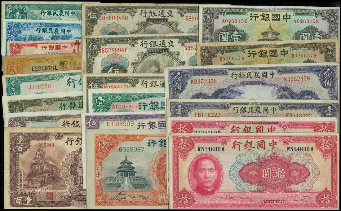 Republican era, lot of 20 banknotes, from the 1930's to 1940's, including Bank of China, 25 yuan, 1940,
