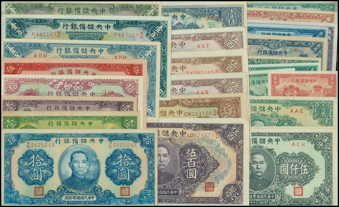 The Central Reserve Bank of China,mixed lot from 1 fen to 10000 yuan, 1940-45, total 26 notes,