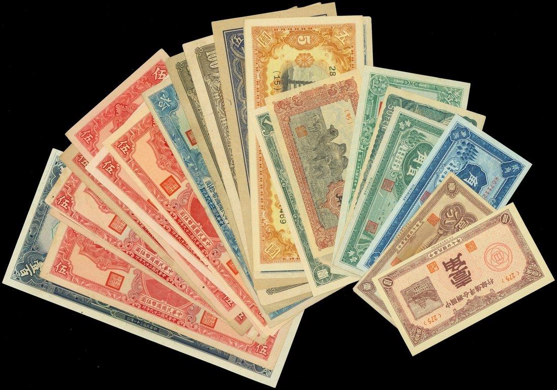 Japanese Puppet Banks, lot of 25 notes from the 1940's, various banks and types,
