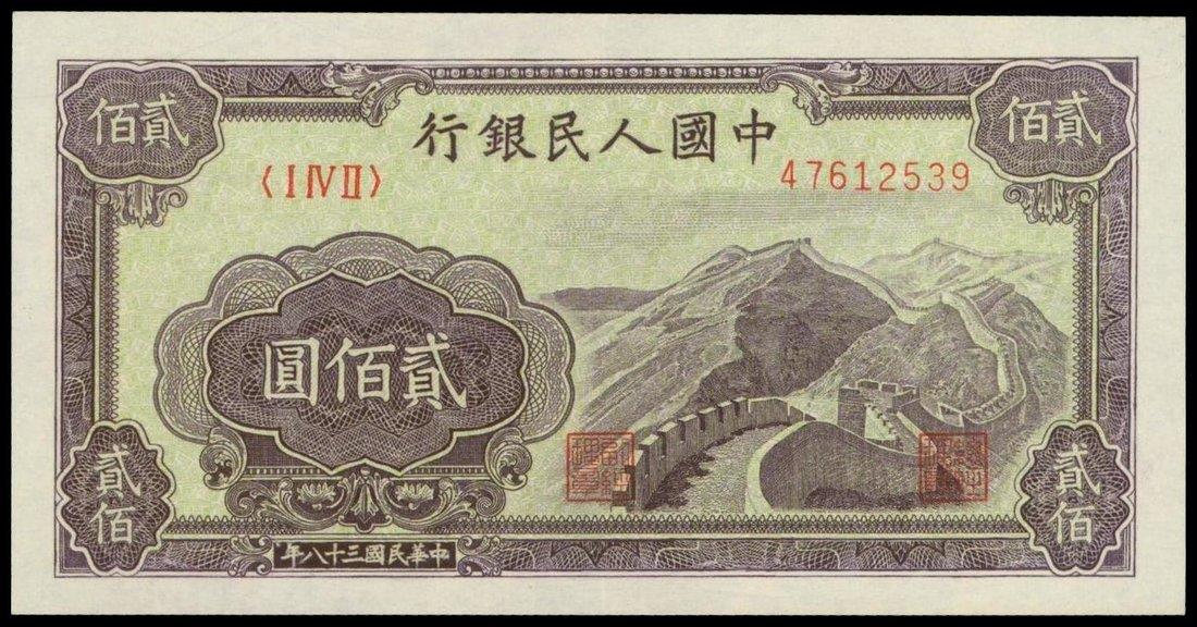 People's Bank of China, 1st series renminbi (1948-1949), 200 yuan, 47612539, 'Great Wall'