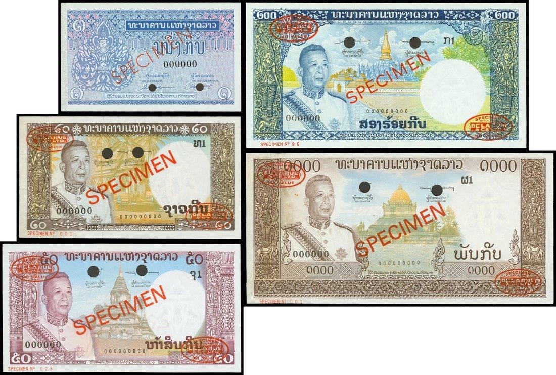Laos, group of 4 specimens for, 1, 20, 50, 200 and 1000 kip, 1962-1963 series,