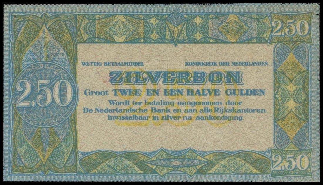 Netherlands, Silver Note,2 .5 gulden, ND(1920), remainder,blue, green and yellow, value at centre left and top and bottom right,
