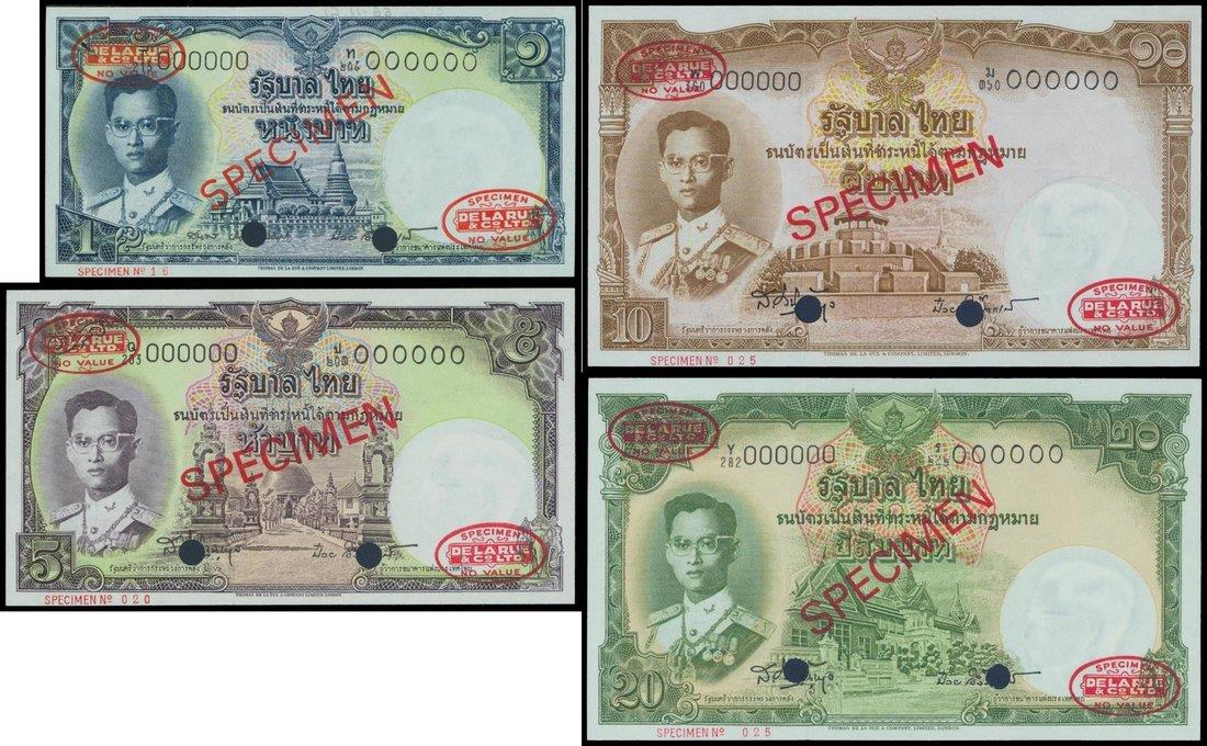 Thailand, group of 4x specimens from the (1953-1955) series, for 1, 5, 10 and 20 baht, all featuring the young King Rama,