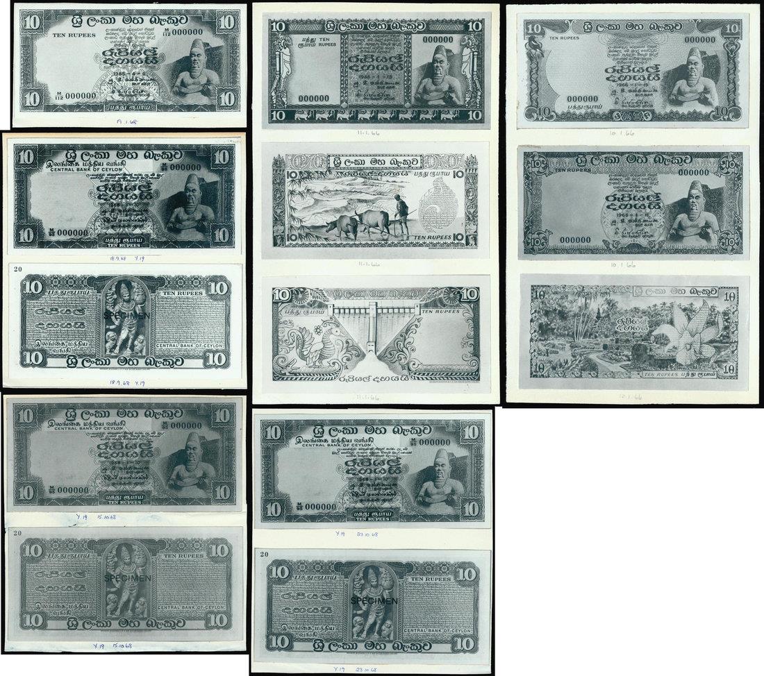photographic proofs for 10 rupees, the ‘Statue of Parakkrama’ series, c.1966 to 1968, on the casual glance similar to the ones issued but on closer inspection these proofs have different vignettes,