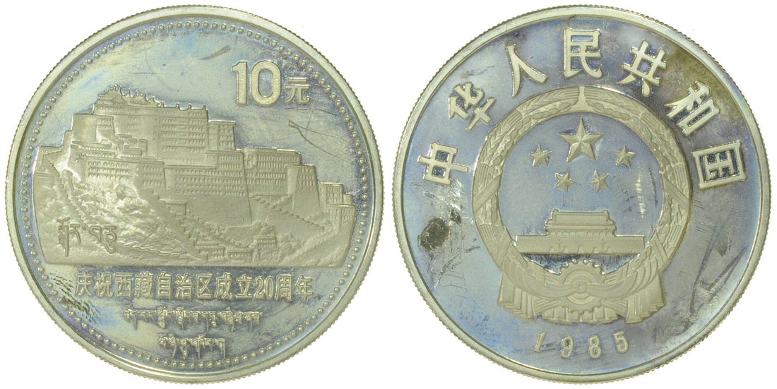 China, silver proof 10 yuan, 1985, 20th Anniversary of Tibet Autonomous Region, mintage 3000,